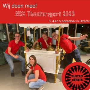 Lieve BB fans, Wij zijn er dit jaar weer bij! Het Nederlands Studentenkampioenschap Theatersport. Morrison, Irene, Gero en Teun zullen ons dit jaar in Utrecht vertegenwoordigen op 3, 4 en 5 november in Utrecht! We zouden het natuurlijk superleuk vinden om jullie daar te zien. Ga naar nsktheatersport.nl en haal je tickets!